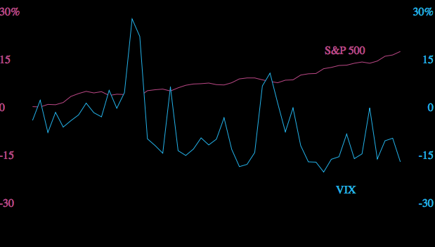 華爾街恐懼指數VIX 觸及24年低點